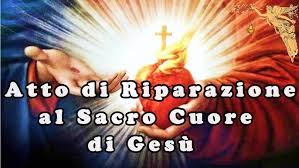 Gesù dolcissimo, il cui immenso amore per gli uomini viene con tanta ingratitudine ripagato di oblio, di trascuratezza, di disprezzo, ecco che noi, prostrati innanzi a te, intendiamo ripagare con particolari attestazioni di onore una così indegna freddezza e le ingiurie con le quali da ogni parte viene ferito dagli uomini l'amantissimo tuo Cuore.